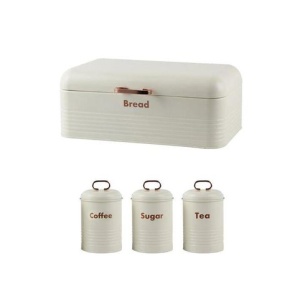 Gold Handle Bread Bin And 3 Piece Canister Set - Cream