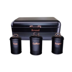 Gold Handle Bread Bin And 3 Piece Canister Set - Black