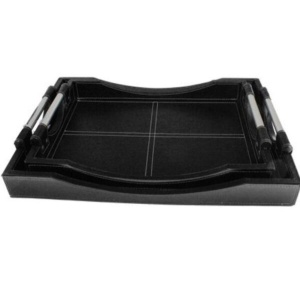 Royal Homeware Twin Leather Tray Set - Black Leather with White Stitch