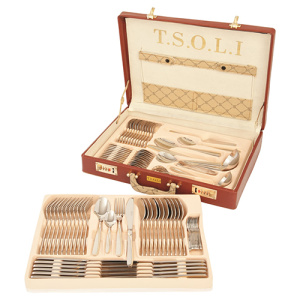 T.S.O.L.I 84pc Cutlery Set With Suitcase Gold And Silver Design