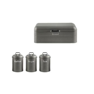 Silver Handle Bread Bin And 3 Piece Canister Set - Grey